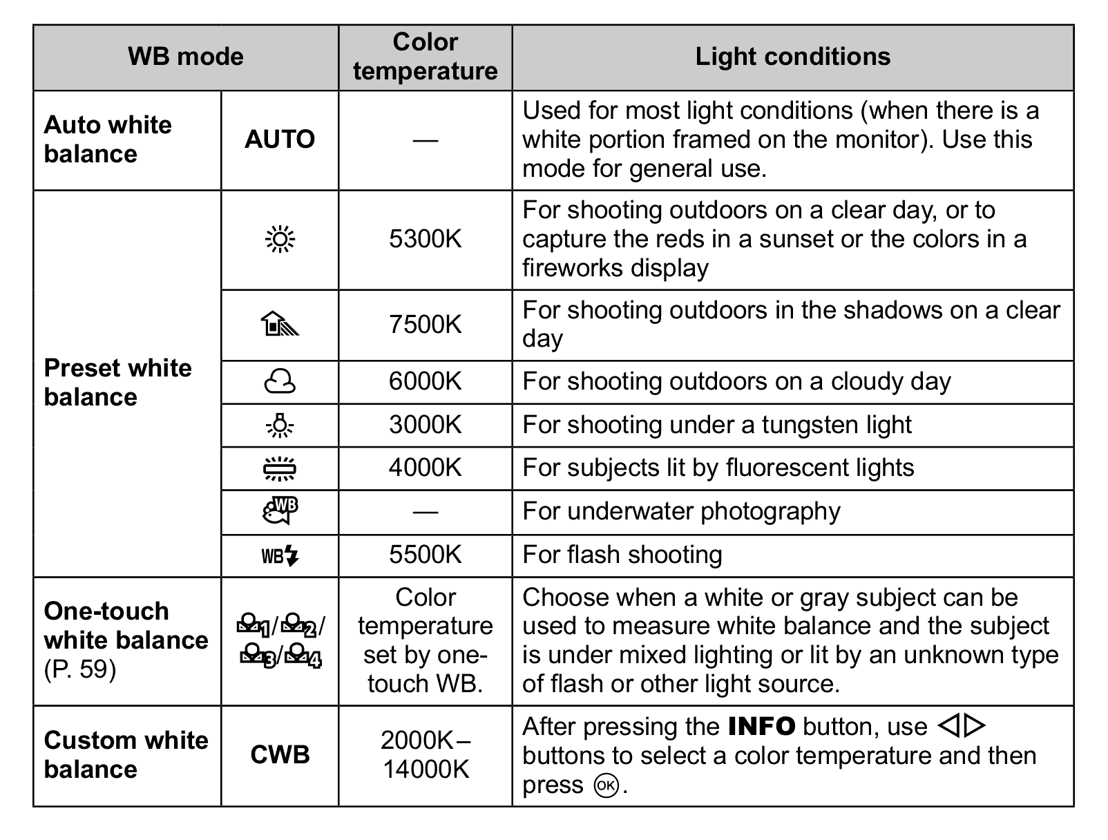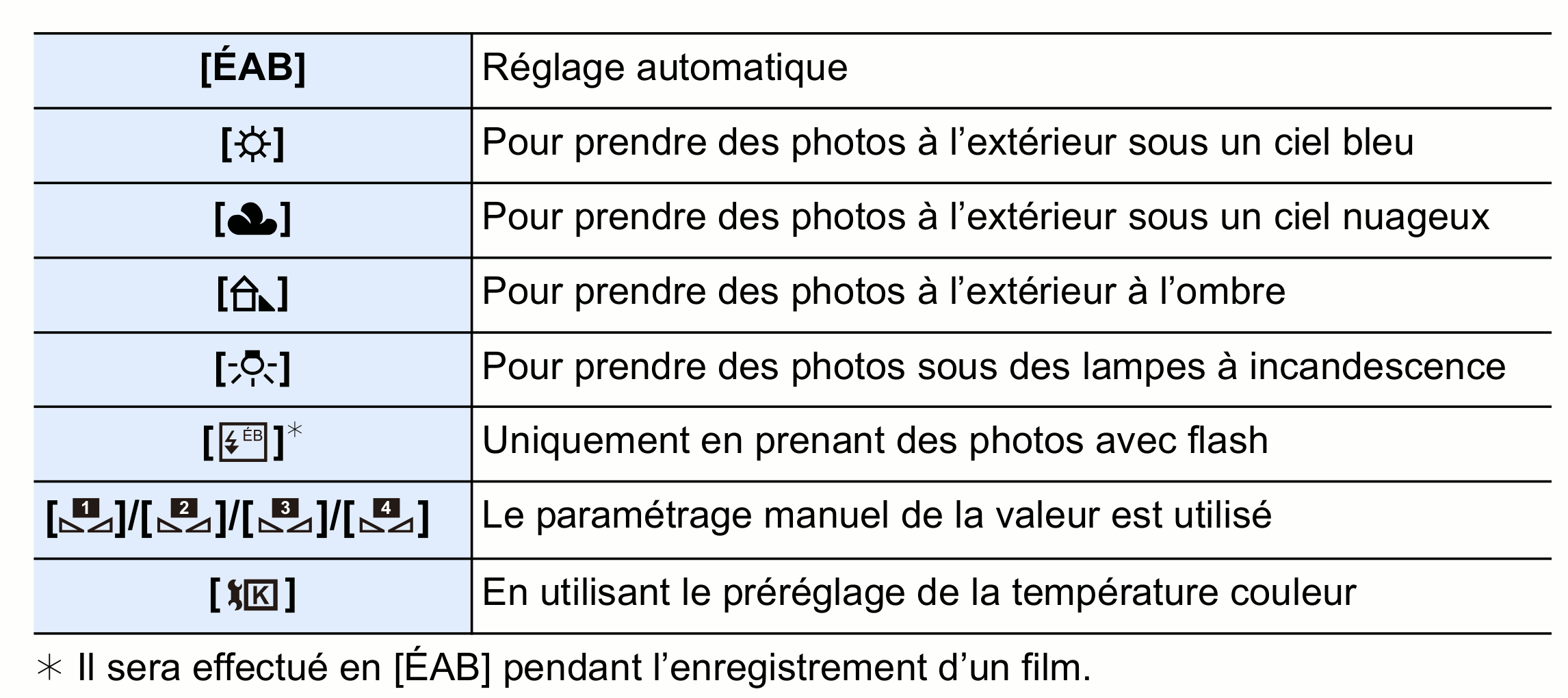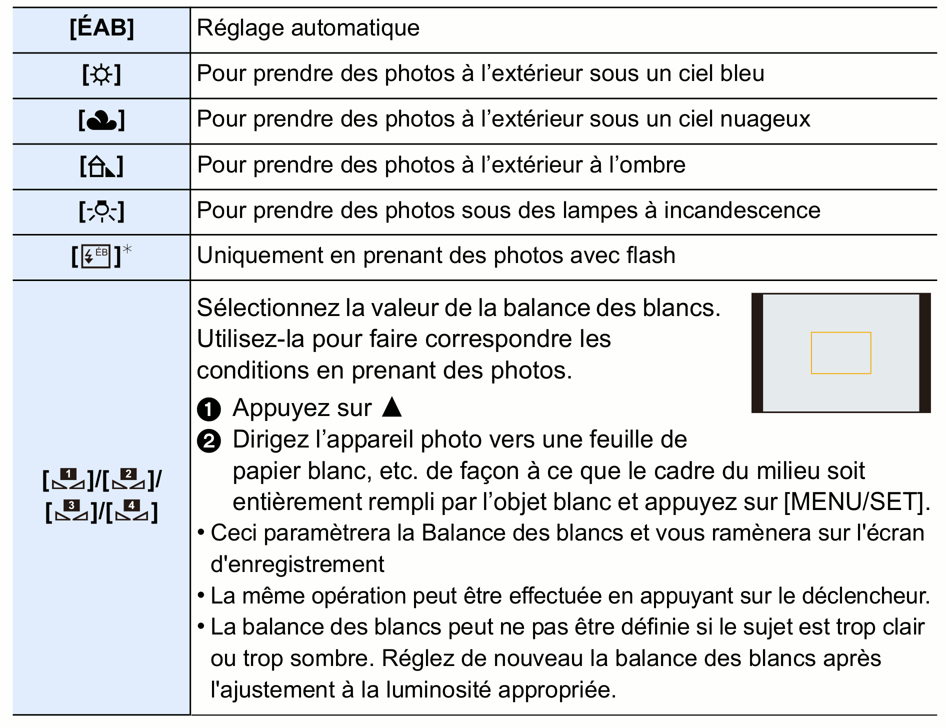 Remarques « personnelles » si vous utilisez la balance des blancs manuelle: